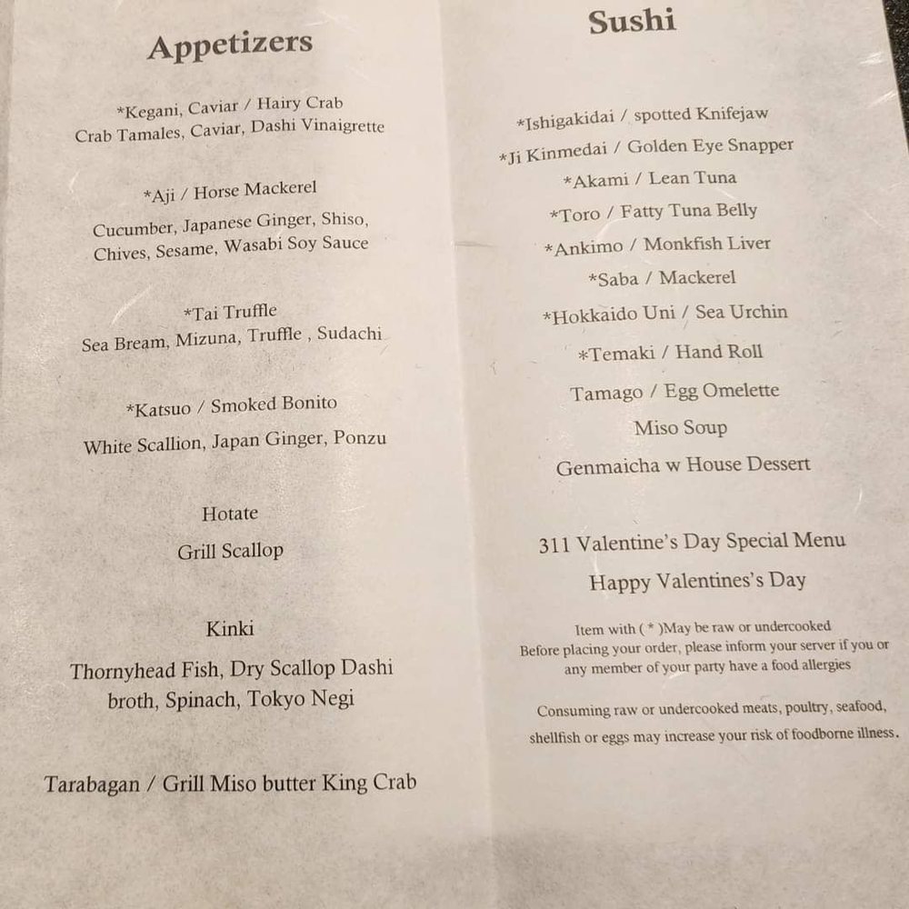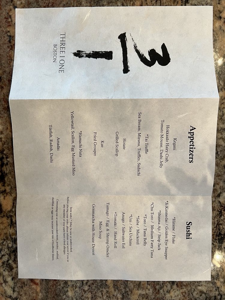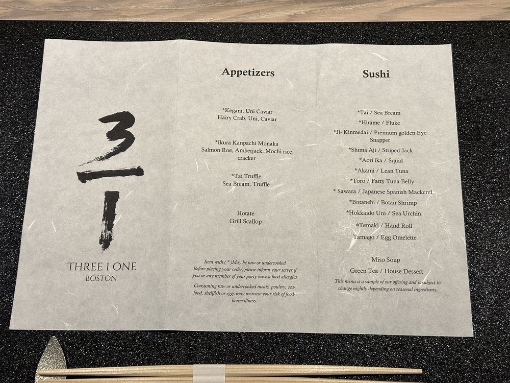 Introducing the Menu at 311 Omakase Boston (Three 1 One)
